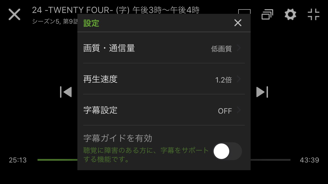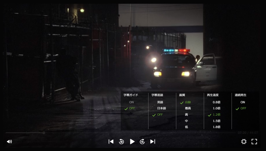 字幕言語をOFFにします。再生速度を1.2倍にします。