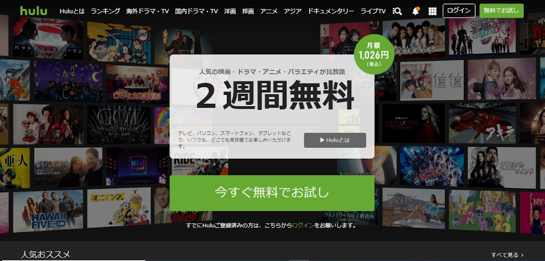 その場合、Huluで月額1026円(税込)ですから、格安の英会話マスター方法だと言えるでしょう。